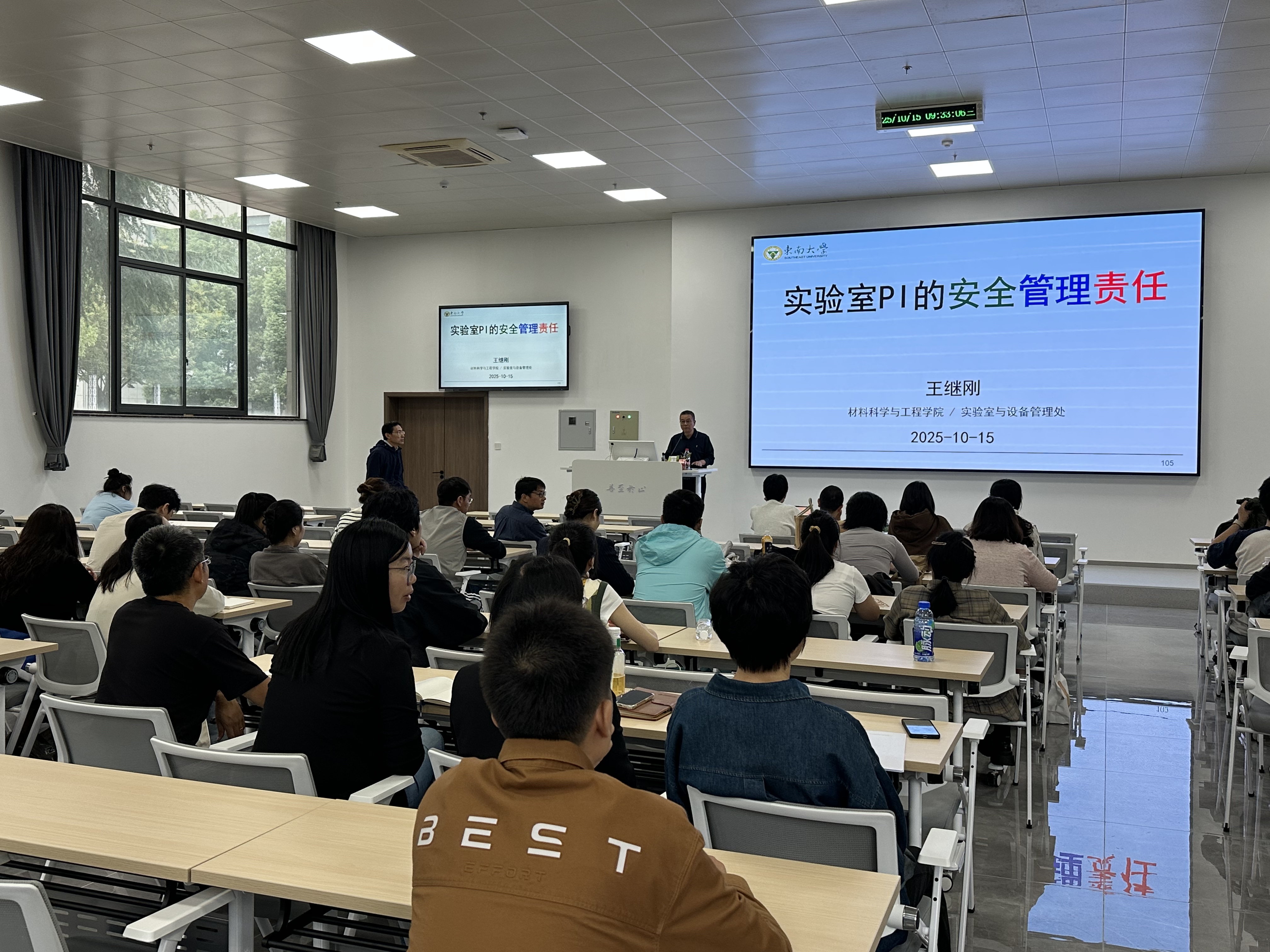 2025年10月15日,必威西汉姆联官网在江北校区汇川楼C101成功举办实验室安全培训。本次培训由实验室与设备管理处王继刚教授主讲,主题为“实验室PI的安全管理责任”。学院书记华为国、分管实验室安全的副院长陈磊以及学院70余位师生共同参与了此次活动。